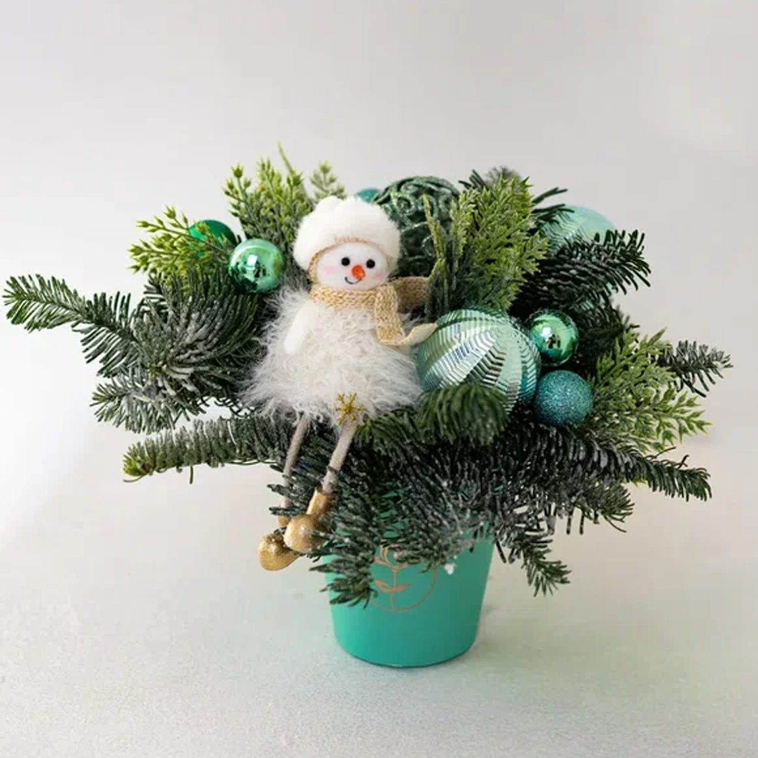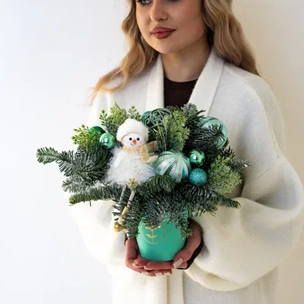 Такую композицию удобно подарить на Новый год подруге, ребёнку, коллеге или поставить дома на подоконник вместо небольшой живой ёлки. Она уместна и в офисе, и в детской комнате, добавляя настроения без лишней мишуры.