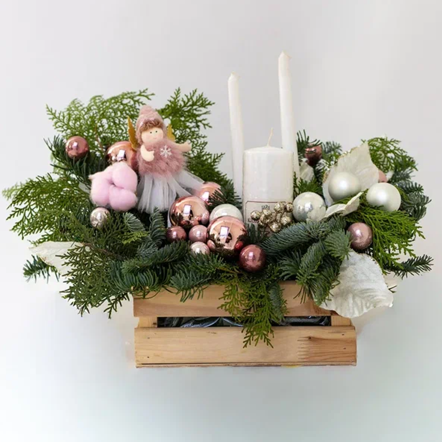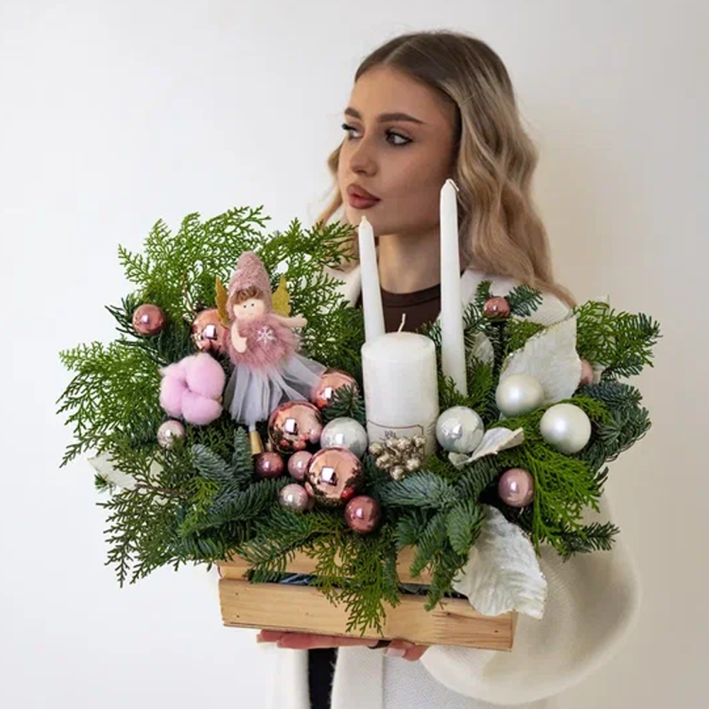 Композиция в ящике из хвои со свечами "Рождественское чудо" N 90869