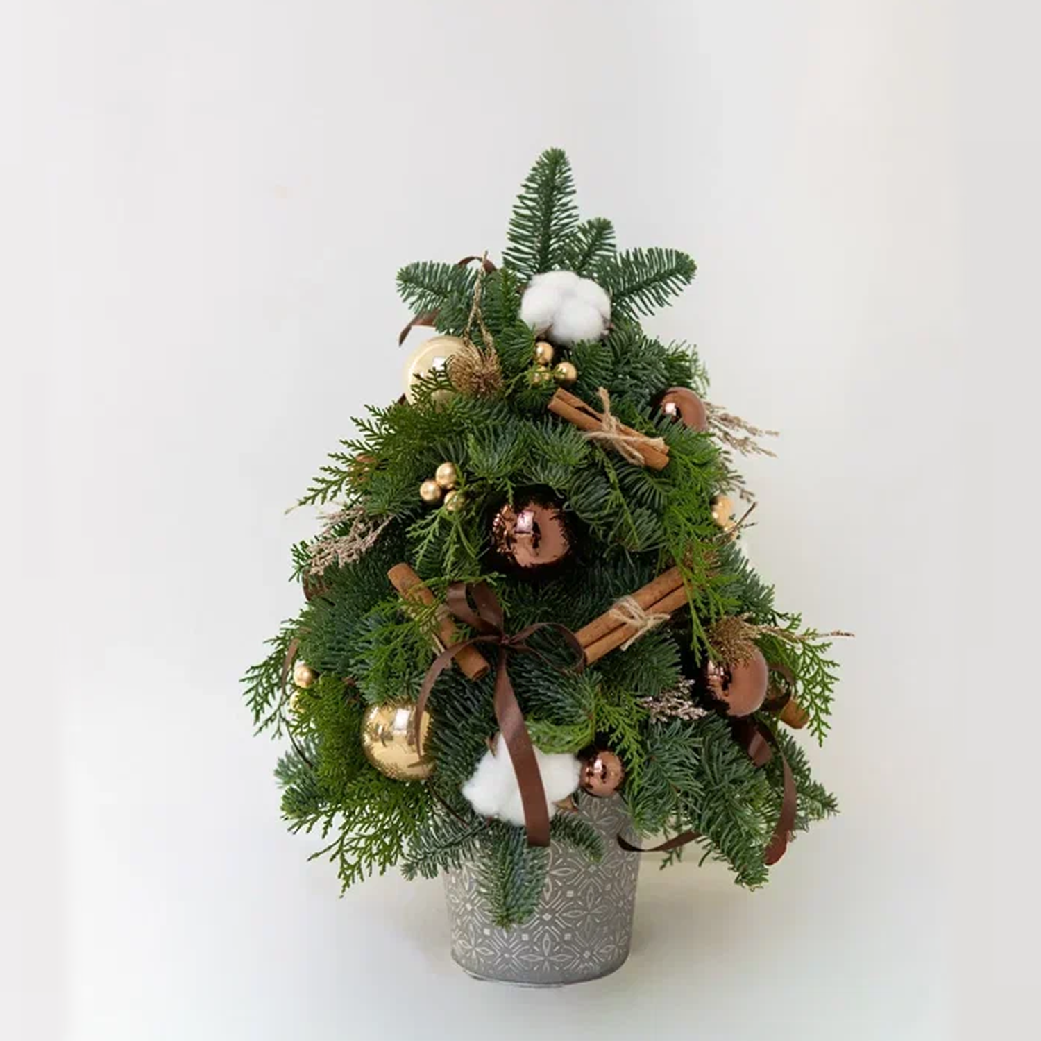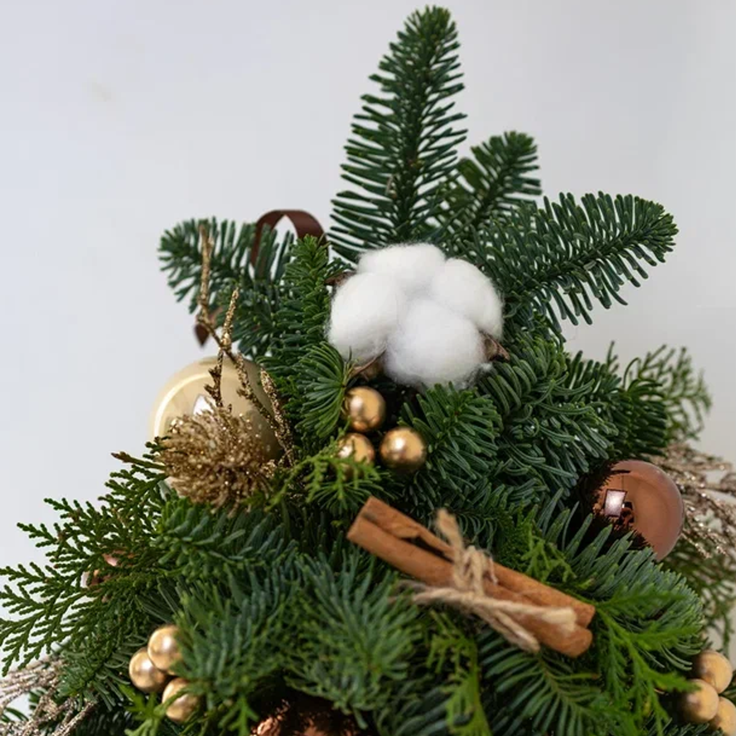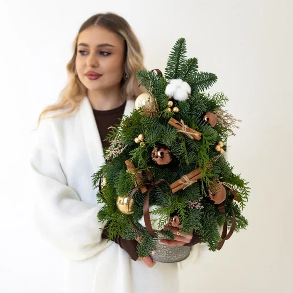 Такая живая елка подойдёт для Нового года дома или в офисе, станет тёплым подарком маме, подруге или коллеге, когда хочется поздравить стильно и без лишней мишуры. Её удобно поставить на стол, подоконник или тумбу - компактный размер и лаконичный декор смотрятся необычно и аккуратно.