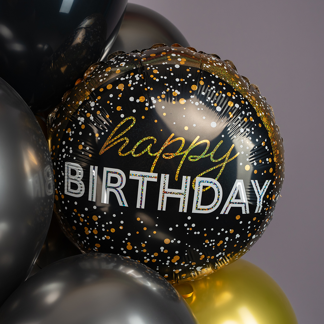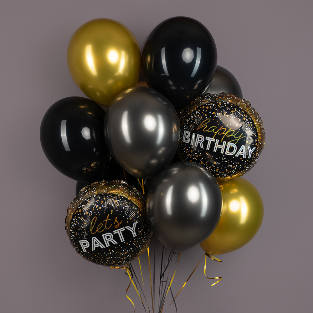 Связка воздушных шаров "С днем рождения" черный с золотом N 92435